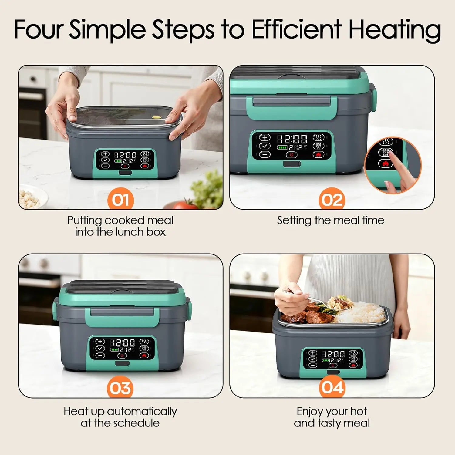 【Timer Function】The food warmer lunch box is equipped with a smart timer for setting mealtime. It automatically heats your food at the set time in advance, ensuring a hot meal when you’re ready to eat. It also has a direct heating mode and heats food instantly without waiting! NOTE: To use the timed heating function, please set the lunch box to local time when you first receive it.