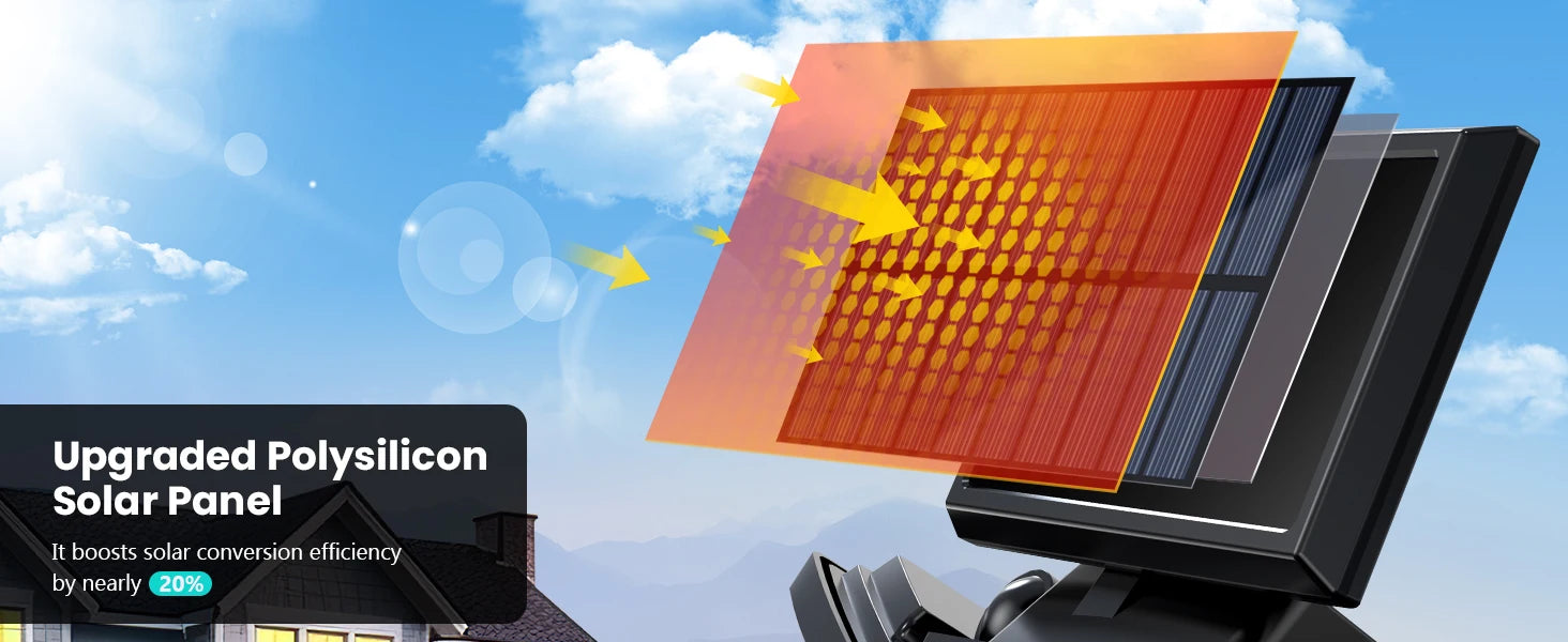 Upgrade your outdoor lighting with a high-efficiency polysilicon solar panel that charges up to 20% faster than standard panels.